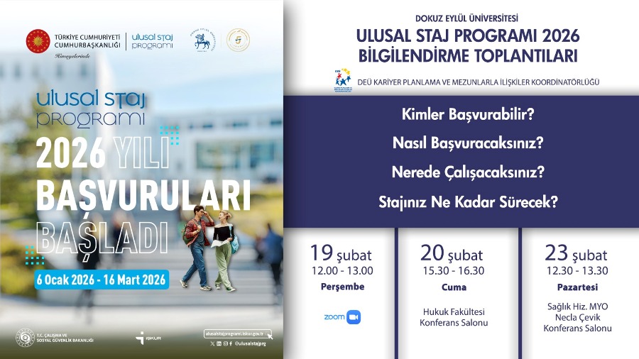 D.E.Ü. ULUSAL STAJ PROGRAMI 2026 BİLGİLENDİRME TOPLANTILARI 18-02-2026 2026 ULUSAL STAJ PROGRAMI BİLGİLENDİRME TOPLANTI PROGRAMI İÇİN TIKLAYINIZ…