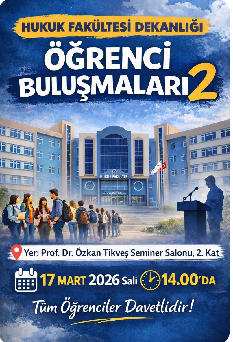 HUKUK FAKÜLTESİ DEKANLIĞI ÖĞRENCİ BULUŞMALARI 2 / 17 MART 2026 SALI / SAAT: 14.00 / TÜM ÖĞRENCİLER DAVETLİDİR! 13-03-2026